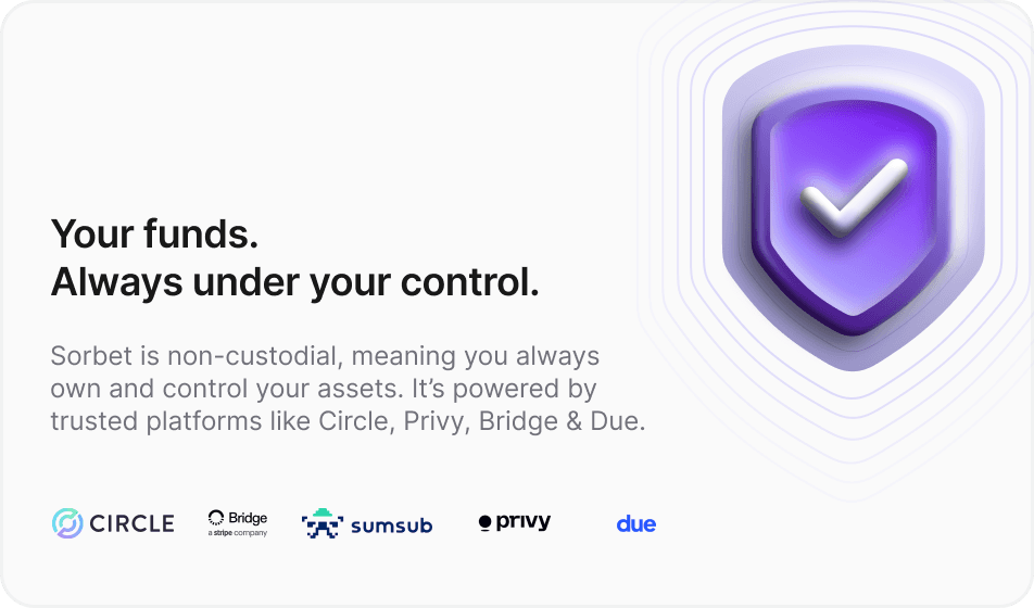 Sorbet never has access to your funds, only you do.