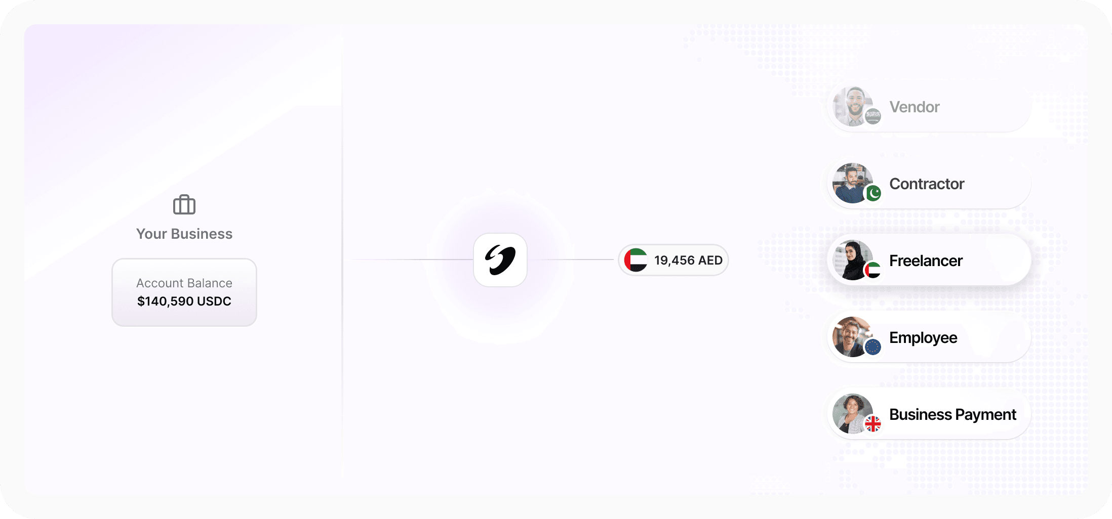 Pay suppliers, teams, and partners anywhere in the world with same-day settlement and transparent fees.